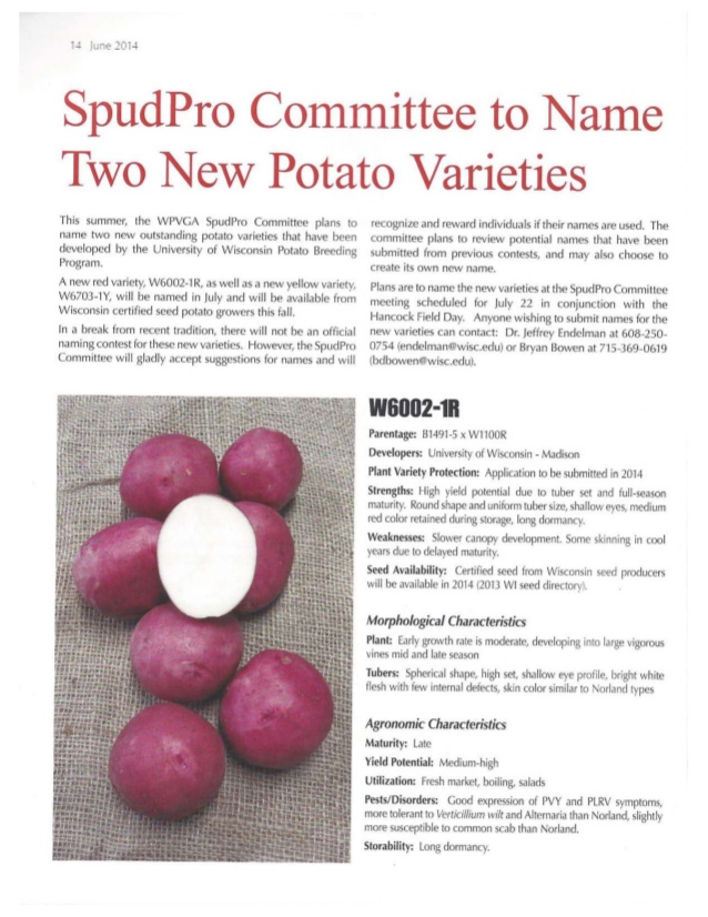 Felix Navarro, superintendent of the Hancock Agricultural Research Station, is encouraging members of the CALS community to submit name ideas for two new Wisconsin potato varieties that he helped develop. The winning names will be selected by