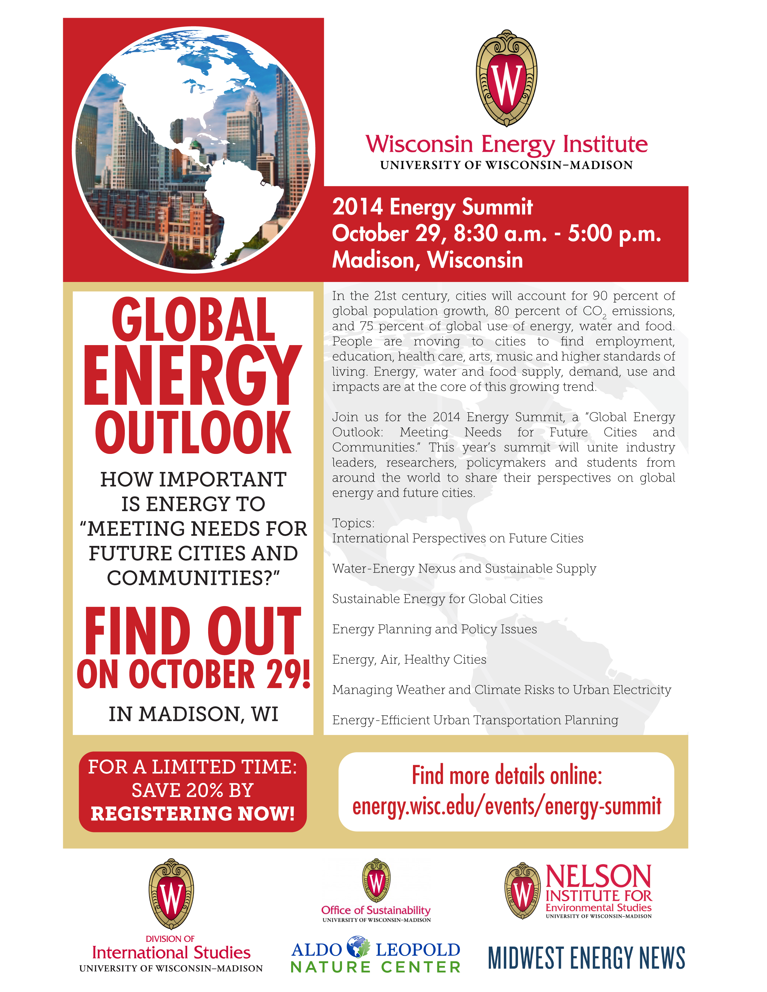 Reminder: The early bird registration deadline for the 2014 Energy Summit is coming up on Wednesday, October 1st. After that date, the cost of registration increases to $50 ($15 for students).