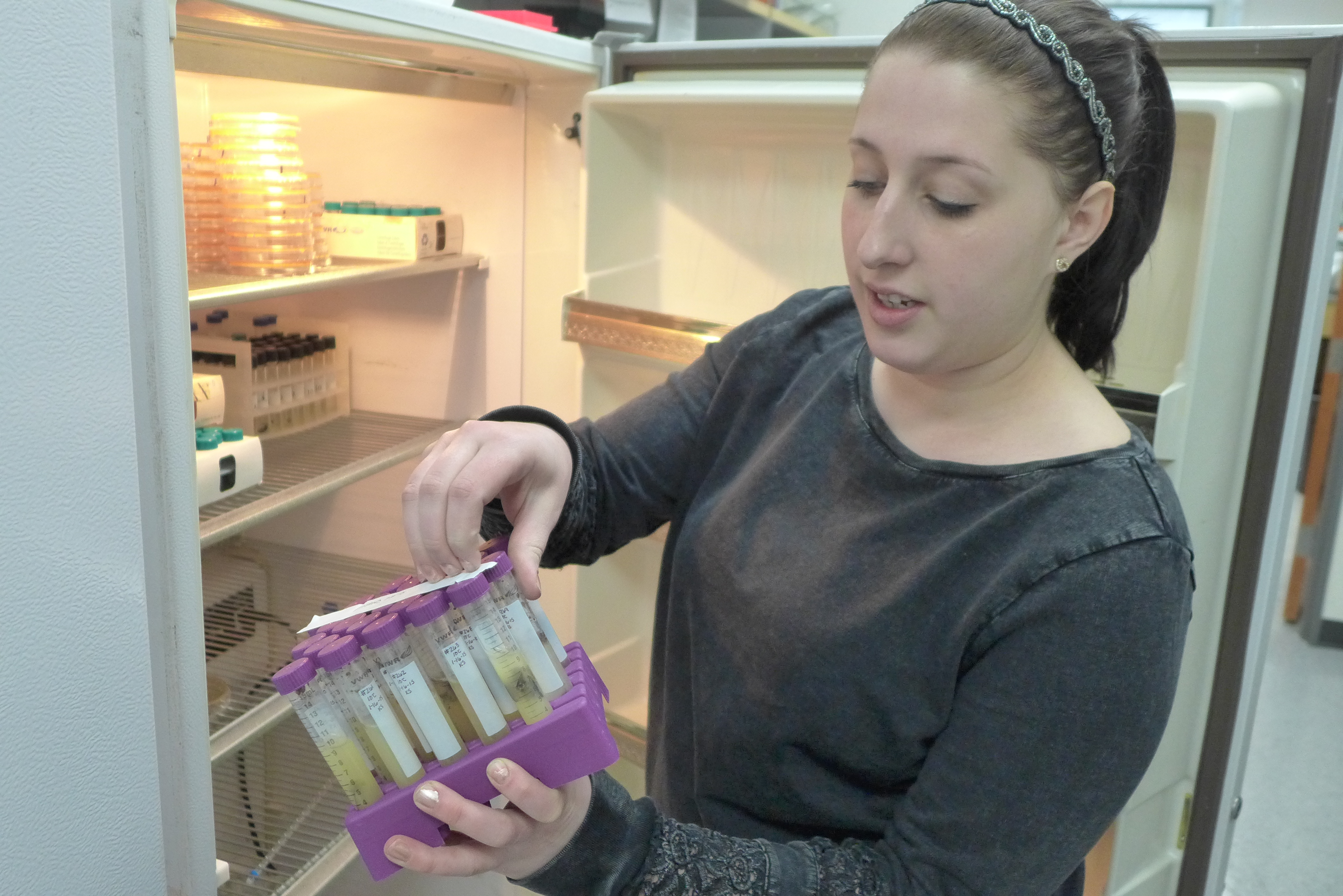 Kayla Sylvester was first author of a new study that identified Blastobotrys buckinghamii, a yeast named for the UW-Madison mascot Bucky Badger. As an undergraduate, Sylvester was instrumental to a survey that retrieved more than 80 species of yeasts, including eight unknown ones, for identification. Banner photo: Yeast cultures being grown in the Hittinger lab; both photos: David Tenenbaum