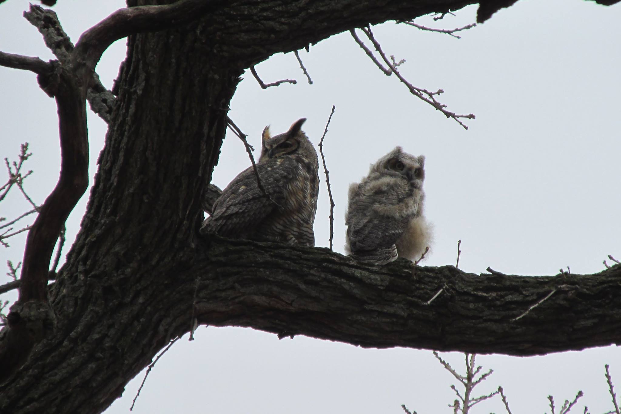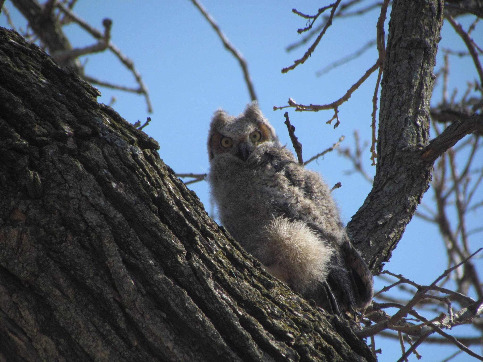 About two weeks ago, people started reporting sightings of a great horned owl hanging out on a tree along the lakeshore path. The UWMadScience blog speculated the owl might be watching a nest in a hole in the tree.