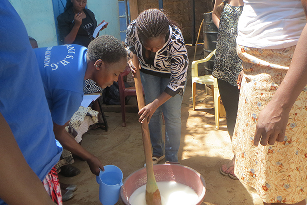 Women produce a batch of soap while others observe and learn. Photos courtesy of Kayla Sippl.