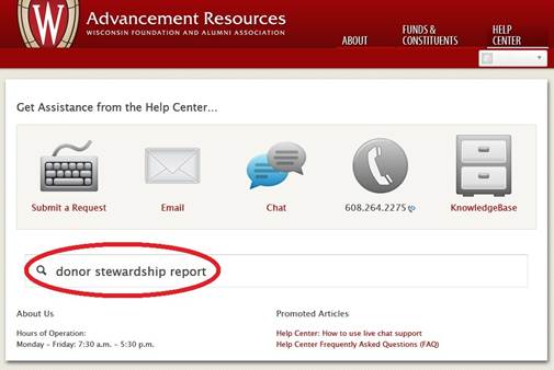 To get the document, first direct your browser to the WFAA Help Center at help.uwadvancement.org or access the Help Center via the Advancement Resources website at uwadvancement.org.