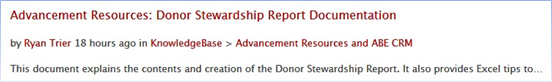 Enter “donor stewardship report” in the search field: