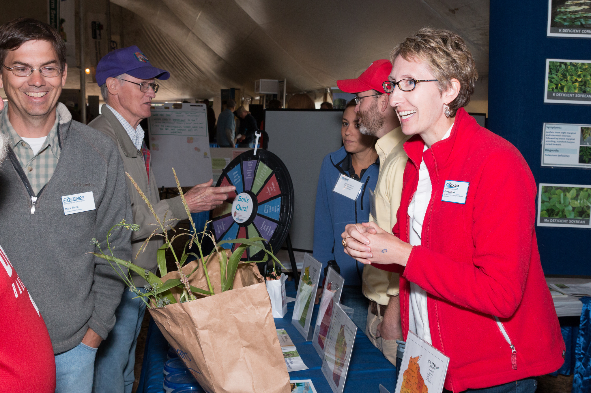 Cool, dry weather helped draw an estimated 45,000 visitors to Wisconsin Farm Technology Days at Statz Bros Inc. dairy farm in Sun Prairie last week. Throughout the three-day event, dozens of CALS/UW-Extension faculty and staff were on-site to answer questions and offer expert advice. The Alumni Tent, which was shared by CALS, UW-Platteville and other institutions, offered a reception at 1:00 p.m. each day featuring Babcock Hall cheese and Bucky’s Butchery meats. Dean Kate gave welcome remarks at Wednesday’s reception, which was hosted by CALS.