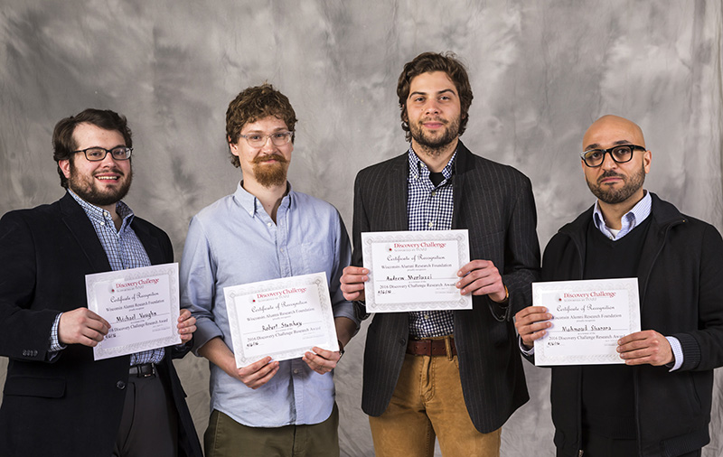 2016 Discovery Challenge winners. From left: Michael Vaughn, Robert Stankey, Andrew Merluzzi, Mahmoud Sharara. Photo courtesy of WARF.