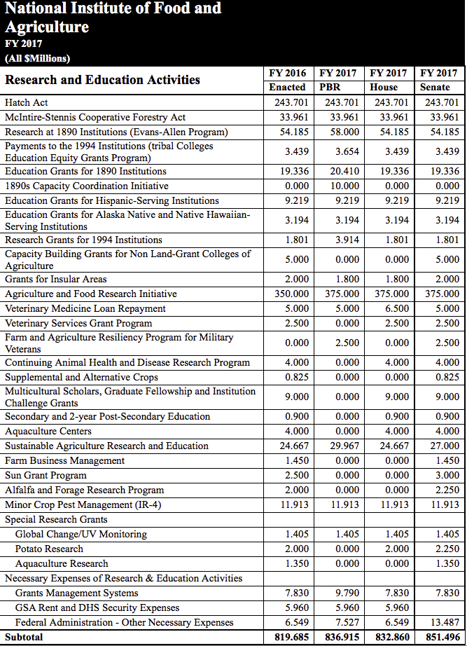 On May 19, the Senate Appropriations Committee approved the FY 2017 Agriculture Appropriations Bill, which is the committee’s recommendations for the 2017 USDA budget. While most lines are flat-funded, meaning their budget allocations remain the same, there are some exceptions: