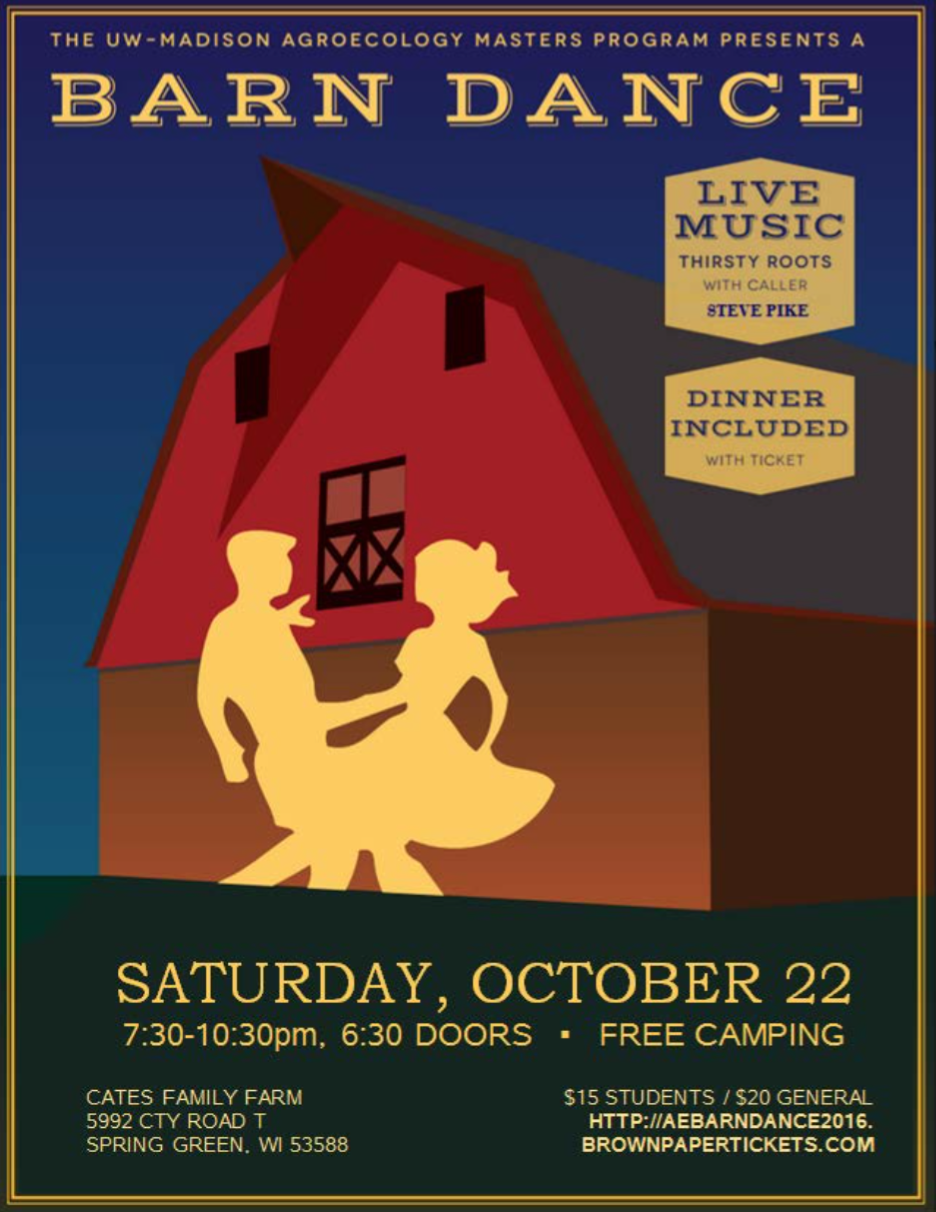 It’s that time of year again to show off your dancing skills and enjoy some great company! The 4th annual Agroecology Barn Dance is here! This years dance will have live music, provided by the band Thirsty Roots with caller Steve Pike. Delicious vegetable stew, bread, and apple cider are included with your ticket price.