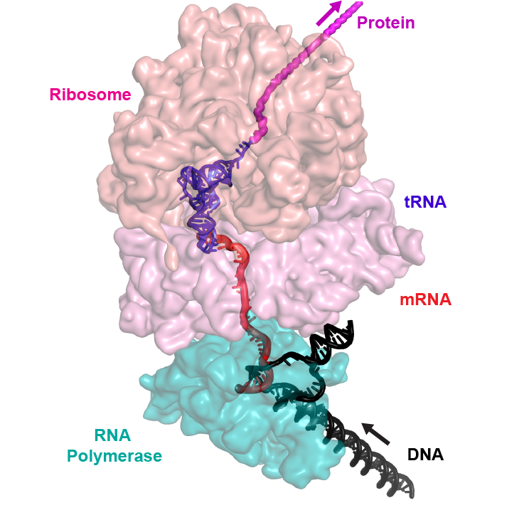 Transcription and translation occur in animals and humans, too, but they are not coupled like they are in bacteria. Rather, they take place in two physically different parts of the cell. If scientists can find a way to disrupt the expressome, they may be able to develop drugs that target bacteria but leave human cells unharmed, the researchers say.