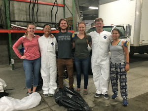Students conducted a trash audit of the waste stream at Union South as a part of their project. Pictured here are (left to right) Shelby Kuenzli, Nikki Rasmussen, Sam Marquardt, Madeline Fischer, Bret Shaw, and Maria Castillo. Photo: UW-Madison LSC.