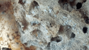 The entire process, as is often the case with social insects, is complex. Young termites, or young workers, collect and eat the wood. The termites’ fungal-laden feces then become an integral part of a fungal comb, a sponge-like structure the termites create within a protected chamber. On the comb, the fungi further degrade the wood until its simple sugars are ready, some 45 days later, to be consumed by old worker termites.