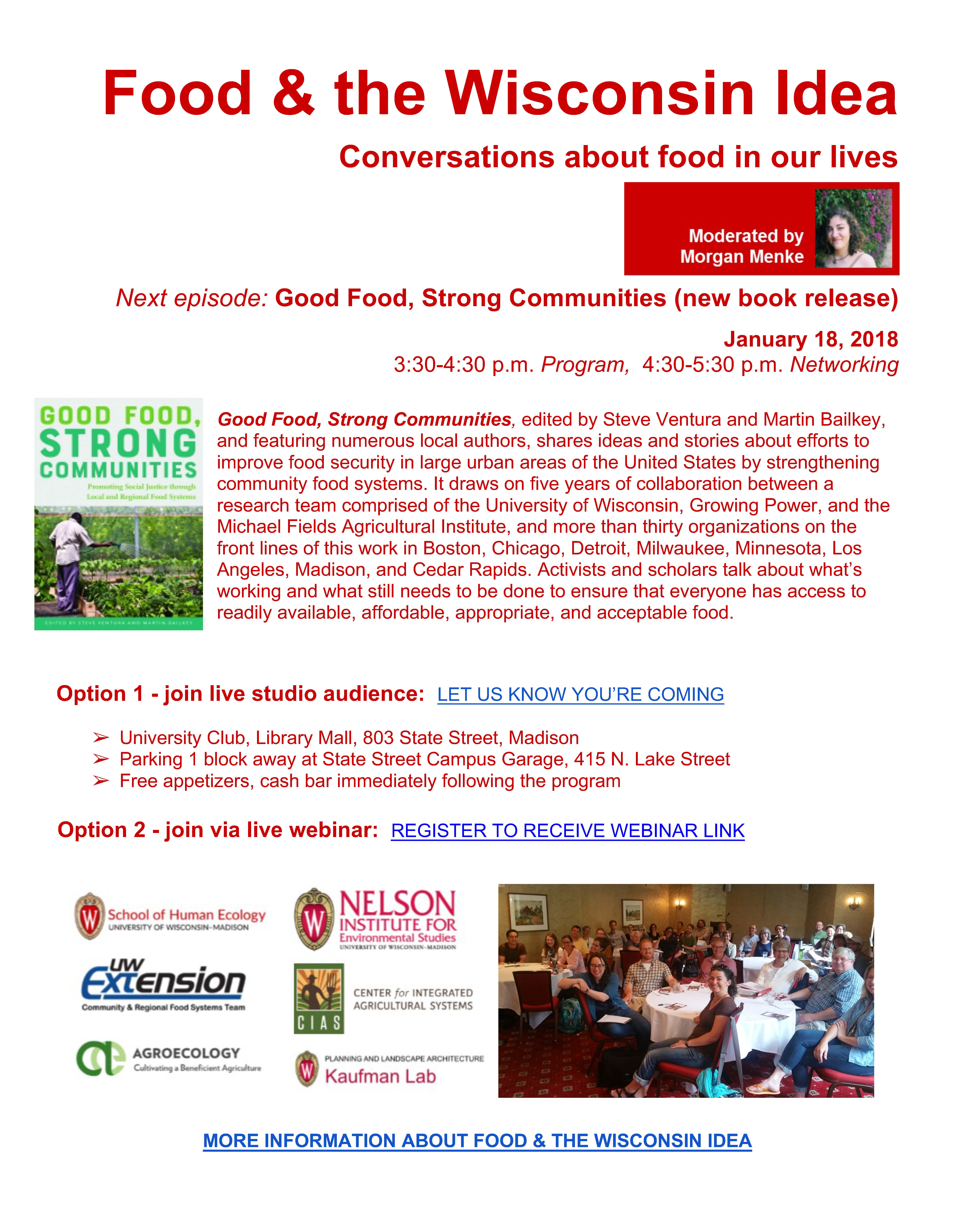 Release event for “Good Food, Strong Communities” book co-edited by Steve Ventura – Jan. 18