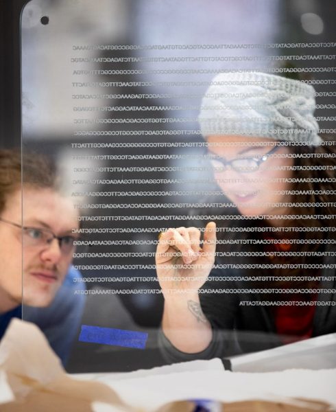 The public science art installation was created by Madison-based artist Angela Johnson and genetics professor Ahna Skop. The piece is permanently installed outside of the UW–Madison Genetics/Biotech Auditorium, across from room 1360, and is designed to highlight genetic research on campus and encourage visitors to interact with and support science.