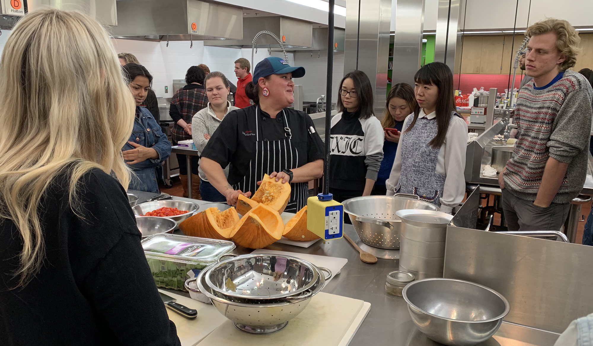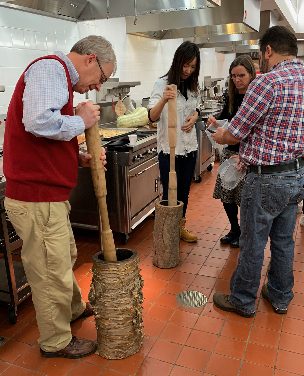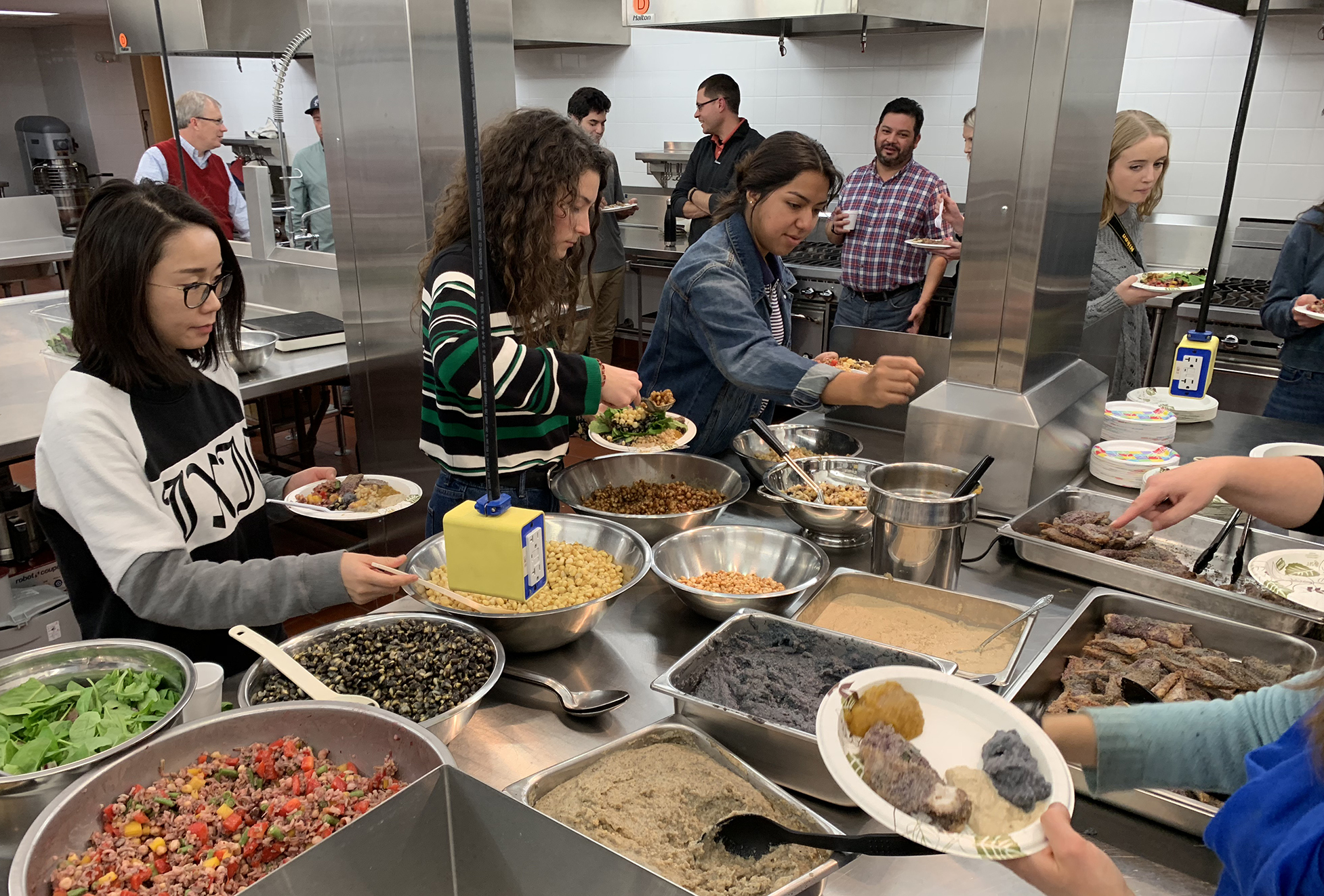 On Nov. 15, the Department of Food Science hosted its first annual Fall Fest event. Students, staff and faculty from throughout Babcock Hall—including the Babcock Hall Dairy Plant, the Babcock Hall Dairy Store and the Center for Dairy Research—were all invited. The event, put on in partnership with the Intertribal Agriculture Council, involved learning about the traditional foods of Native Peoples; helping to prepare a meal using local, indigenous foods under the guidance of three chefs; and then enjoying the feast together. It was a memorable experience for all involved, yielding much more than a nutritious meal. Participants gained a deeper appreciation for Native foods and culture, while immersed in a community-building event. The photos below capture some of the activities of the evening.