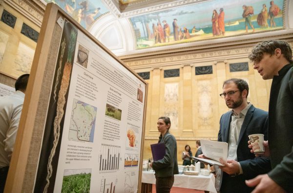 Several CALS graduate students presented projects at a research showcase at the UW–Madison Day at the Capitol. State legislators and their staff also heard flash talks by UW–Madison experts, including Dairy Science Professor and Extension Specialist Kent Weigel and Soil Science Professor Steve Ventura. More photos from the legislative outreach event can be seen on the CALS Flickr account.