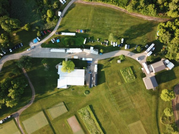 Early morning drone shot of O.J. Noer with the trailers and RVs in place. Photo: Courtesy of Bruce Schweiger