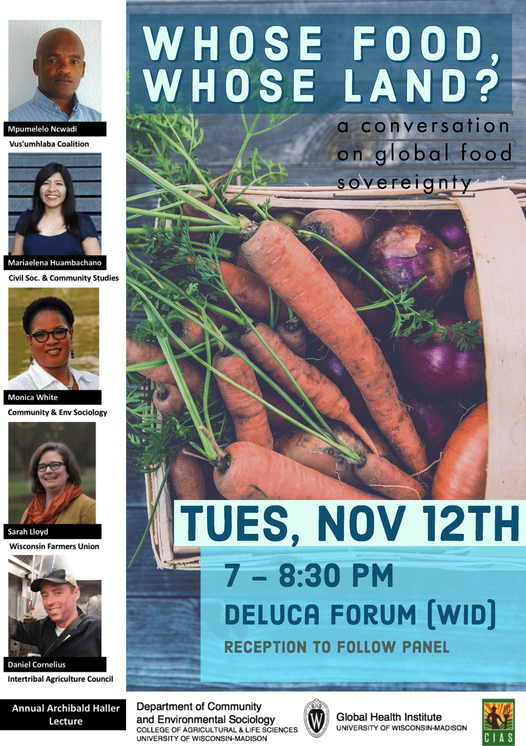This event is the annual Archibald Haller lecture of the Department of Community and Environmental Sociology, and is co-sponsored by the Global Health Institute and the Center for Integrated Agricultural Systems.