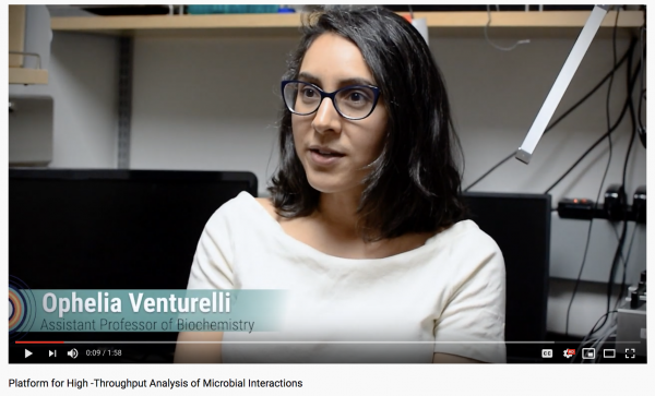 A team of CALS biochemists, including Ophelia Venturelli, Philip Romero and Ryan Hsu, was named a 2019 WARF Innovation Award winner for their microfluidic tool for mapping how bacteria interact in complex communities. A second CALS team, composed of researchers from the agronomy department and the Wisconsin Crop Innovation Center, was among the six finalists for the competition. Their technology involved the improved extraction and preservation of pathogen-free maize germplasm for genetic engineering processes. Related: Venturelli received funding from the U.S. Army Research Office to support microbial communication research. Agronomy’s Heidi Kaeppler, a member of the finalist team, received NSF funding for crop genetic engineering research.