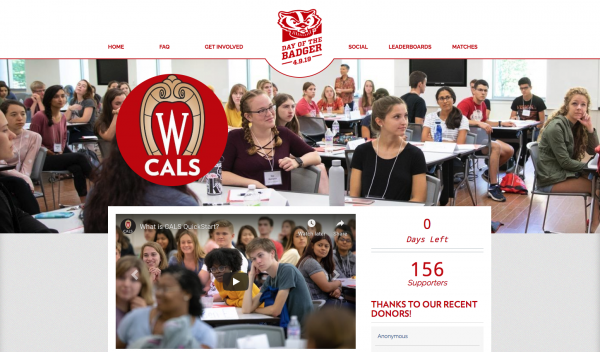The first ever Day of the Badger was held on April 9, 2019. Over the course of 1848 minutes, more than 150 donors made gifts to CALS and more than $60,000 was raised. The money was designated for scholarships for incoming freshmen who participate in CALS QuickStart, a program designed to help incoming first-year CALS students get an early start on coursework, reduce their time to graduation and join a cohort of fellow students.