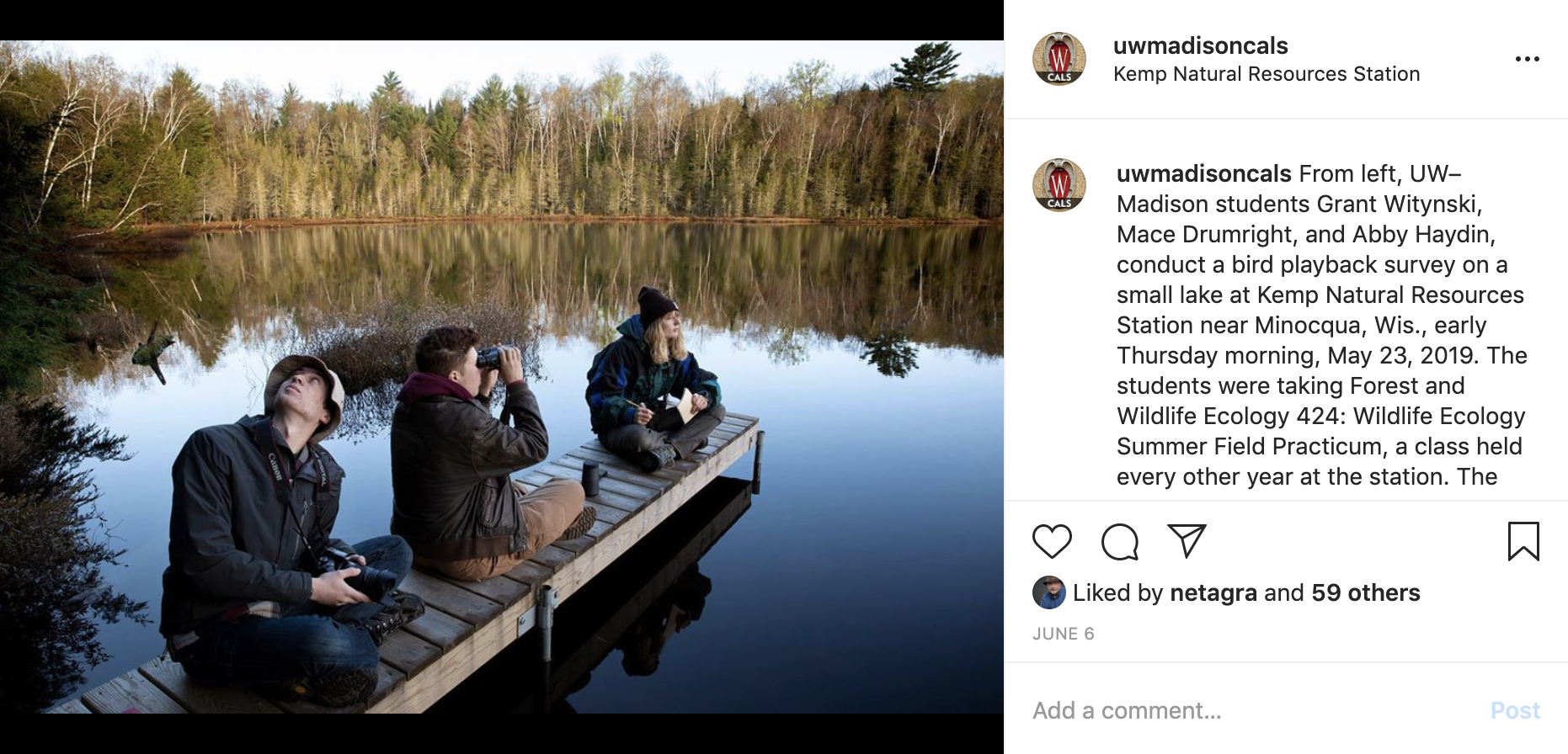 Popular on social media: UW students develop skills, networks at wildlife summer camp
