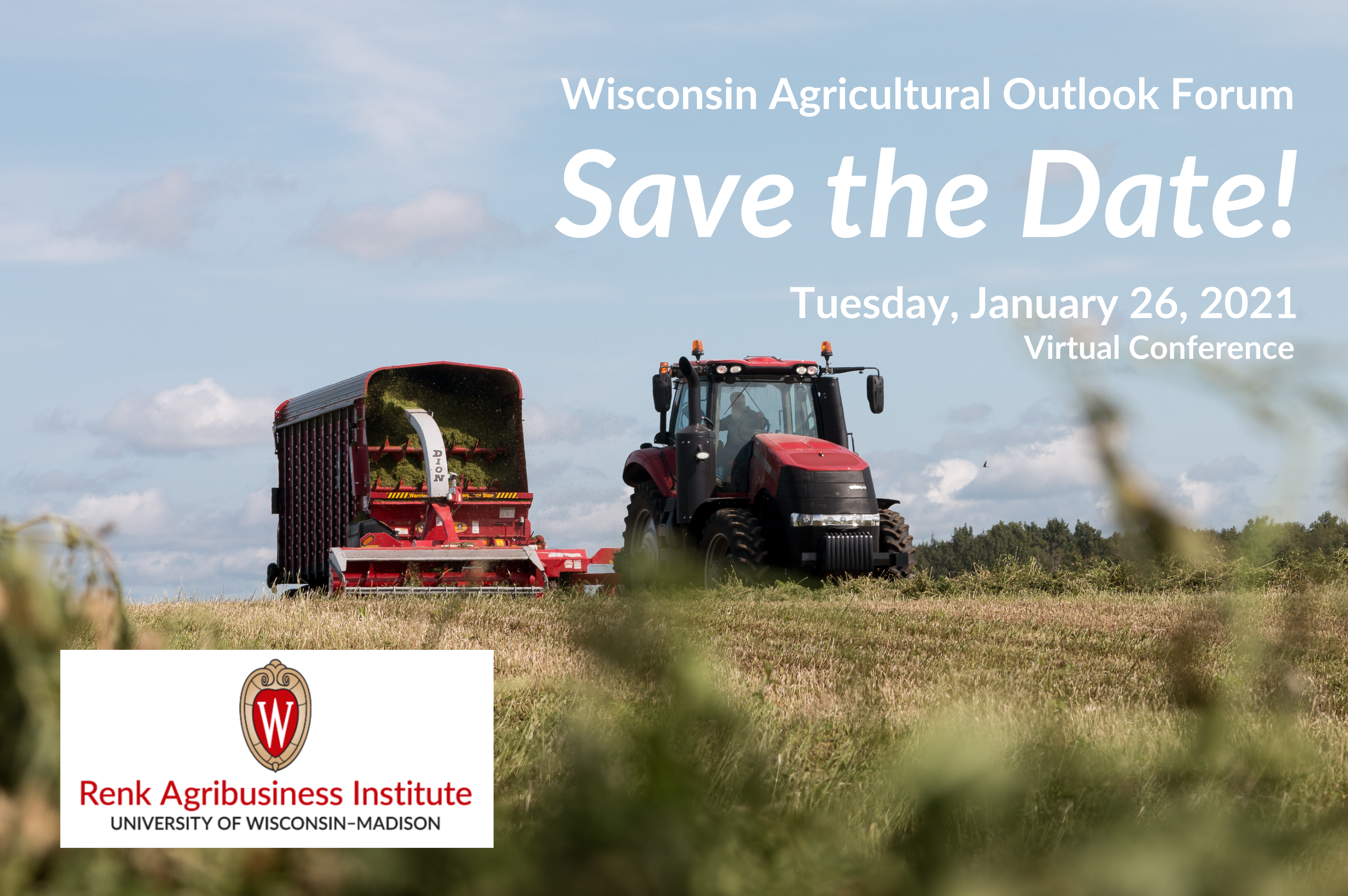 The 2021 Wisconsin Agricultural Outlook Forum, which will feature the topic “COVID-19 and Opportunities for Wisconsin Agribusinesses,” is scheduled to be held virtually on the morning of Tuesday, January 26, 2021. The Forum will be live-streamed through YouTube.
