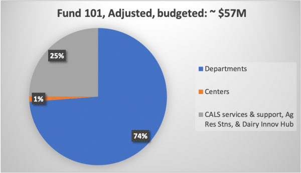 In an e-mail on Nov. 16, 2020, Dean Kate VandenBosch informed CALS faculty and staff of the college’s budget assignments from campus leaders. There are two fund 101 reductions that need to be addressed. A one-time cut taken during our current fiscal year, which is the focus of this eCALS post. There will also be a base budget reduction beginning with FY22. Both will be taken from 101 funds. Reductions to CALS 104 funding through the Division of Extension are also expected and will follow a separate process.