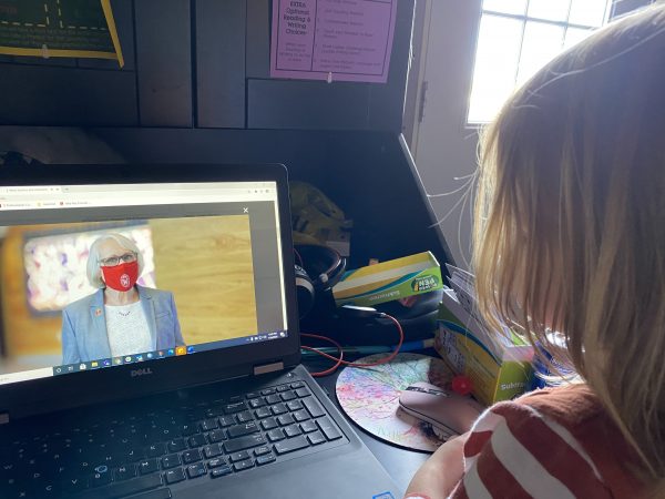 Sarah is occasionally joined in her home office by her nieces and nephews who are doing school remotely this year.