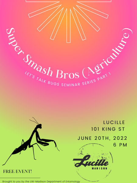 Moving out of the classroom and into a bar/restaurant near you, Insect Ambassadors is starting a summer presentation series full of learning and fun. On Monday, June 20, entomology PhD student Ben Iuliano will present the first talk in the summer series, titled “Super Smash Bros (Agriculture).” This free event will take place at 6:00 p.m. at Lucille restaurant, located at 101 King St. near the Capitol.
