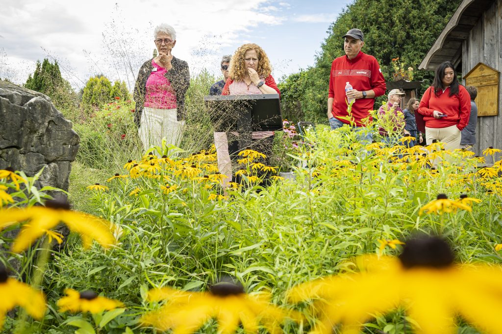 On Saturday, Aug. 20, Chancellor Jennifer Mnookin toured Peninsular Agricultural Research Station’s fruit trials and horticulture garden. Her tour guides for the visit included Rebecca Weipz, superintendent of the research station; Amaya Atucha, associate professor of horticulture and extension fruit crop specialist; local Master Gardeners and fruit growers from the region who work with the station. The event was part of a series of stops Chancellor Mnookin is making across the state during her initial weeks on the job as the new Chancellor of UW–Madison. The below photographs were taken by University Communications photographer Bryce Richter.