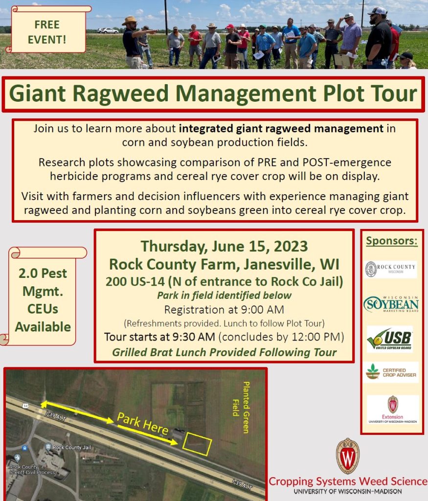 Join WiscWeeds on Thursday, Jun. 15 for the 2023 Integrated Giant Ragweed Management Plot Tour. This free event will be held at Rock County Farm at 200 US-14 in Janesville, WI.