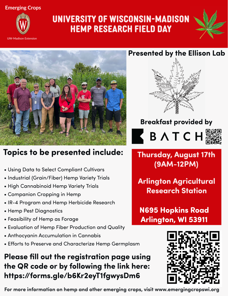 The Ellison Lab in the Department of Horticulture is hosting a field day about the latest hemp research being conducted here at the University of Wisconsin–Madison.