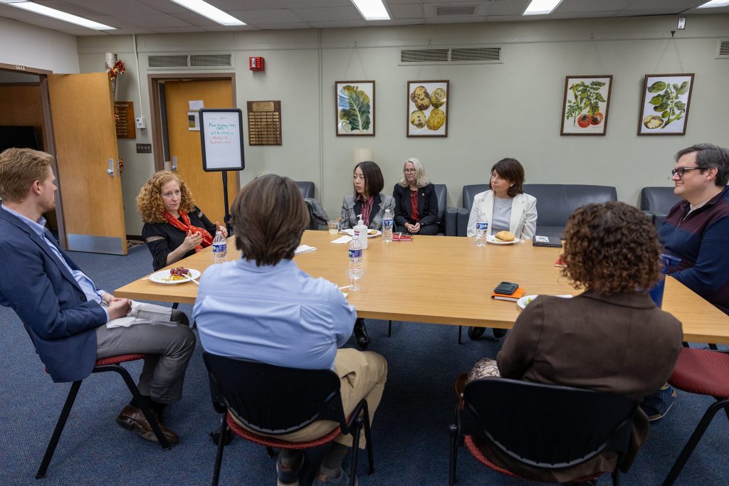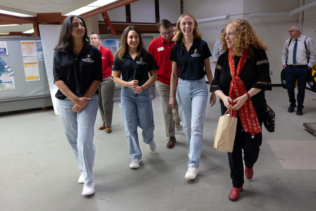 Last week, UW–Madison chancellor Jennifer Mnookin paid a visit to the College of Agricultural and Life Sciences for a day of exploration and interaction. Chancellor Mnookin visited a bacteriology lab in the Microbial Sciences Building, toured the D.C. Smith Greenhouse and other CALS buildings, attended a undergraduate poster session, met with the CALS Ambassadors, listened to graduate student flash talks and enjoyed lunch with faculty members.