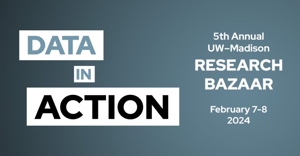 UW–Madison’s Data Science Hub is hosting the 5th annual Research Bazaar on February 7 and 8 at the Discovery Building. With an overarching theme of “Data in Action,” the Research Bazaar is a place to build community and technical know-how. Understanding data and how analytical methods can be deployed in different fields and industries holds the potential to inspire new research directions and innovation, strengthen communities and public institutions, and improve overall quality of life for everyone.