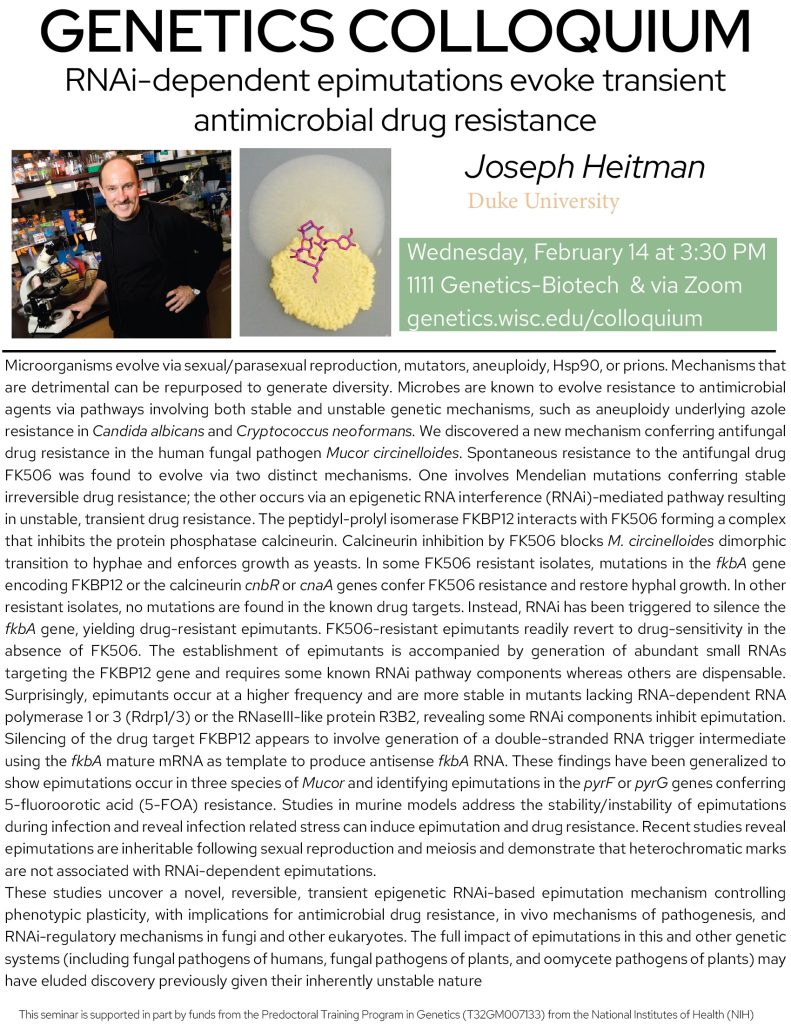 Genetics colloquium: Joseph Heitman on RNAi-dependent epimutations and transient antimicrobial drug resistance – Feb. 14