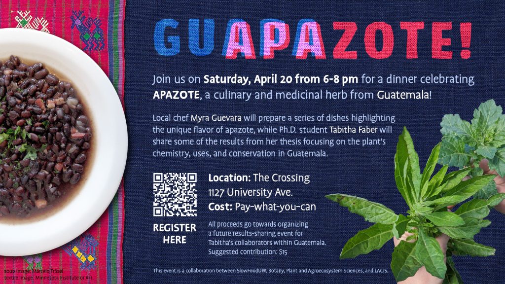 Join grad student Tabitha Faber for a dinner celebrating apazote, an herb from Guatemala – Apr. 20