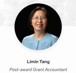 Limin Tang is a post-award accountant and reports to Vicki Schamens. She helps departments coordinate sponsored projects and manages HATCH projects. She works with biological systems engineering, life sciences communication, bacteriology, genetics, community and environmental sociology, soil science, SoHE and Ved Med. She answers questions about PI changes, external sub award invoicing and modifications, rebudgets and allowability. She can also help facilitate no-cost extensions through RAMP.