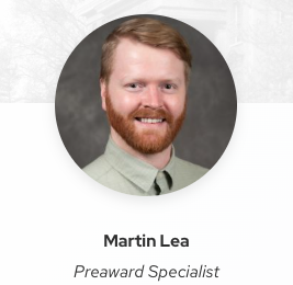 Martin Lea is a pre-award sponsored programs grants and contracts specialist. He reports to Megan Maguire. He helps departments create and review grant submissions and award setups. He works with biological systems engineering, plant and agroecosystem sciences, soil science, the Land Information & Computer Graphics Facility and the Wisconsin Crop Innovation Center. He can answer questions related to grant submissions.