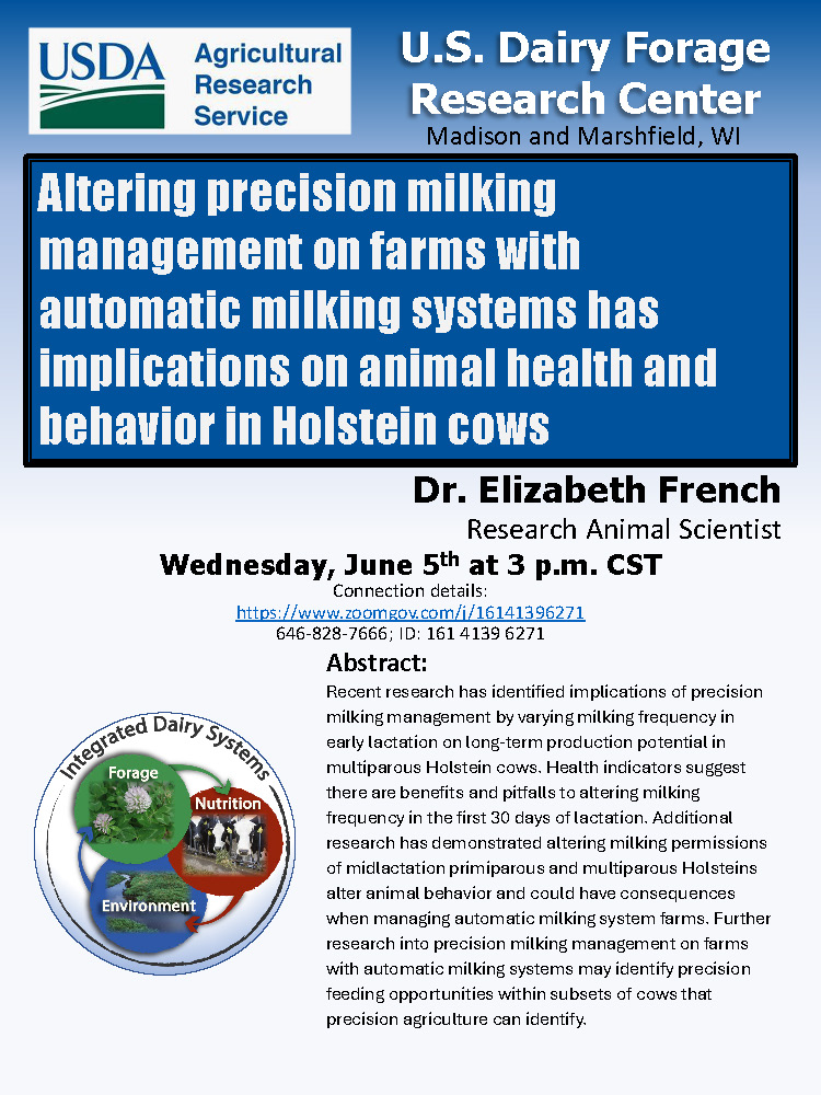 U.S. Dairy Forage Research Center webinar: Altering precision milking management and implications on Holstein cow health and behavior – June 5