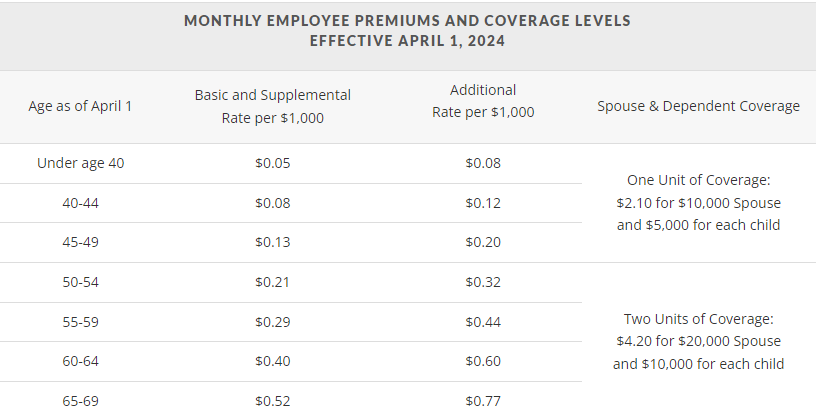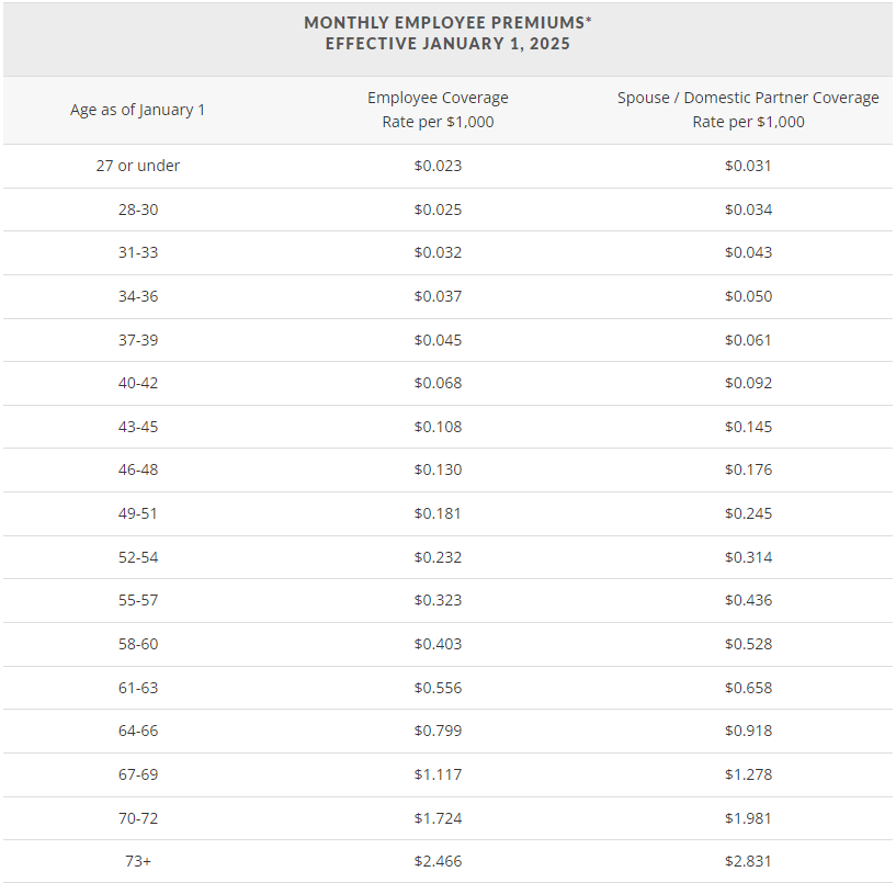 - Individual & Family Life Insurance employee and spouse/domestic partner coverage premium is based on your age as of January 1st each year and your elected coverage level(s).