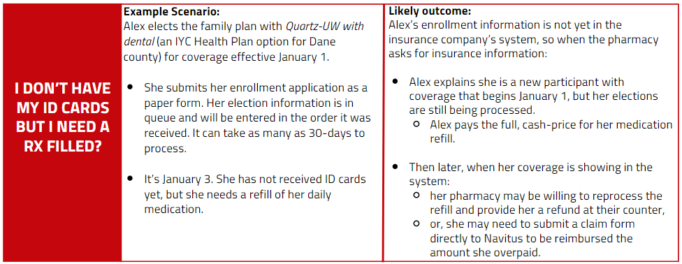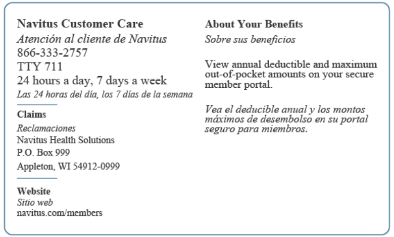 Separate ID cards are issued to employees by the individual health insurance carrier and Navitus. You can register and login to print a pharmacy benefits ID card online at www.navitus.com.