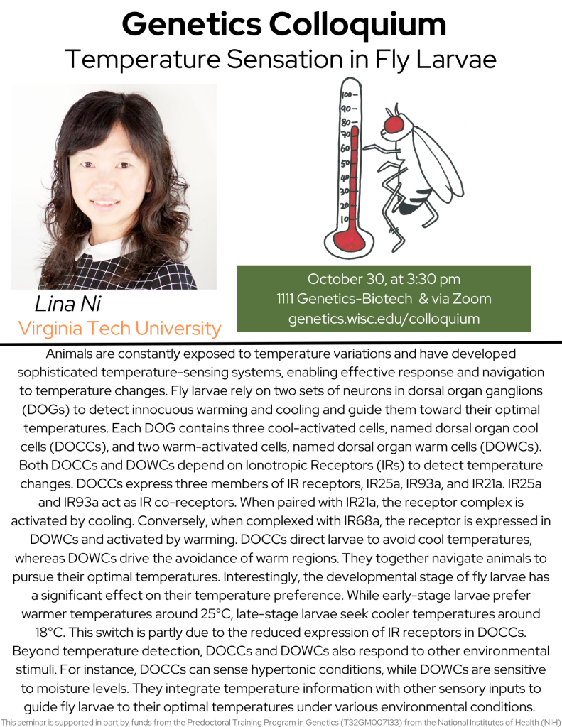 Genetics colloquium: Lina Ni on temperature sensation in fly larvae – Oct. 30