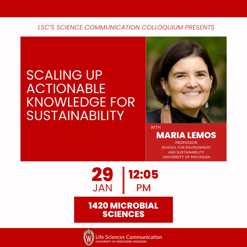 LSC Science Communication Colloquium: Maria Lemos on “Scaling Up Actionable Knowledge for Sustainability” – Jan. 29