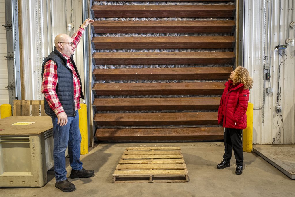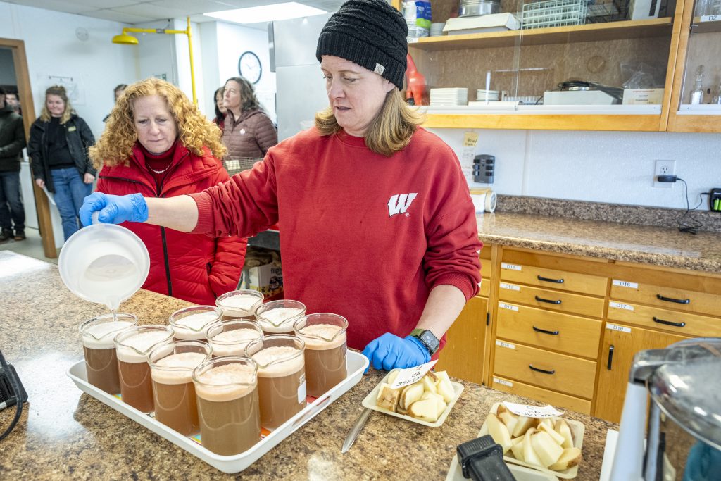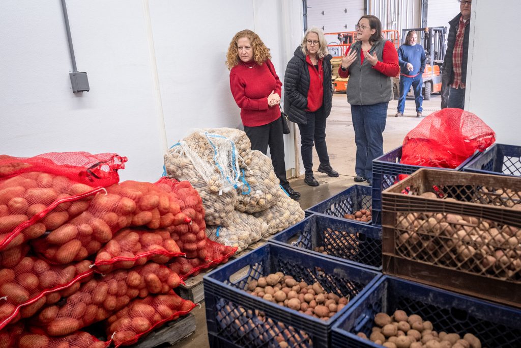 On March 31, Chancellor Jennifer Mnookin visited Hancock Agricultural Research Station during a trip to central Wisconsin. Mnookin and Dean Glenda Gillaspy, who also attended, heard from CALS faculty members Jed Colquhoun and Yi Wang, both from the Department of Plant and Agroecosystem Sciences. Colquhoun, professor and extension specialist, discussed his work that supports keeping water clean and healthy. Wang, associate professor and extension specialist, talked about using AI and robotics for assessing field health. In an Instagram post, Mnookin said that what impressed her most “was the amazing and deep collaboration among our researchers, Wisconsin potato farmers and industry –– truly the Wisconsin Idea.”