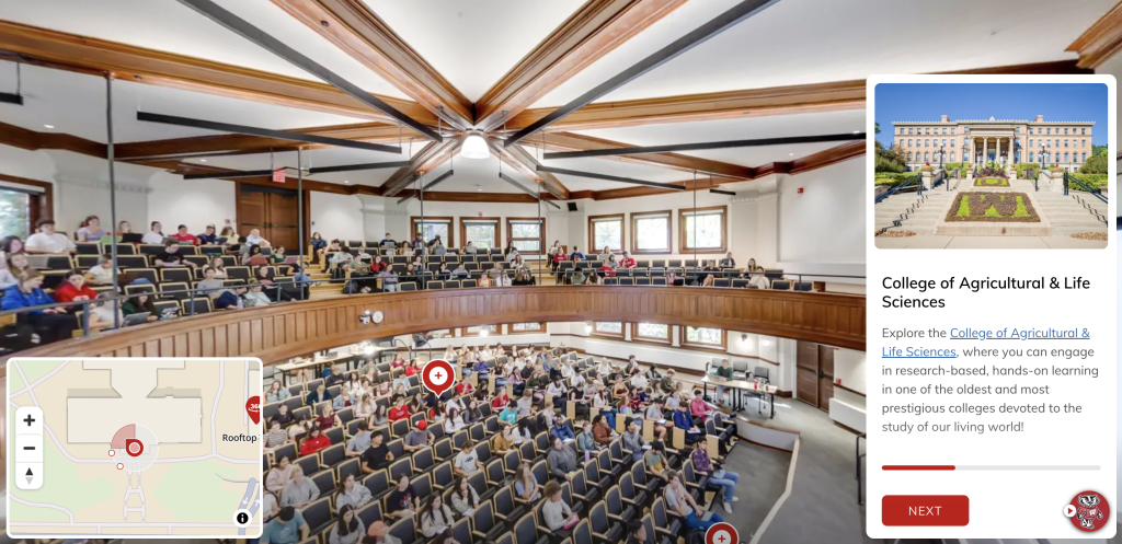 While designed with prospective students in mind, the tool also provides a behind-the-scenes look at spaces that can’t always be featured during in-person tours. It brings campus to life for a variety of audiences and can be found under “Take a virtual tour” at visit.wisc.edu or directly at virtualtour.wisc.edu.