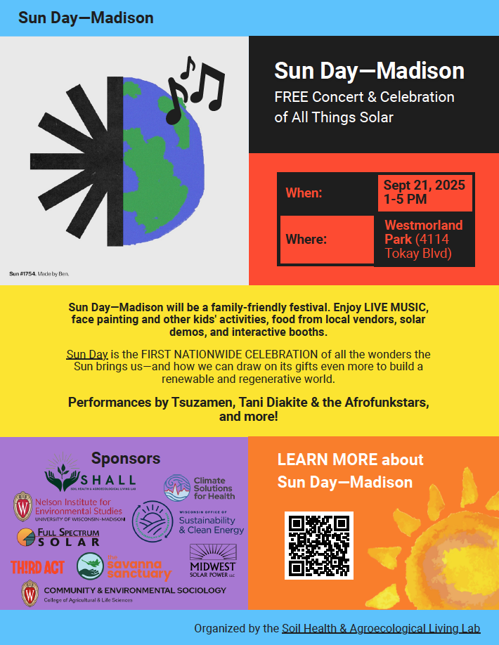 Soil Health & Agroecological Living Lab (SHALL) organizing Sun Day—Madison – Sep. 21