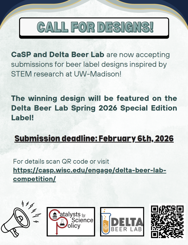 Catalysts for Science Policy (CaSP) is now accepting submissions for their research-inspired design competition with Delta Beer Lab. The winning design submission will be featured on a new special edition beer label this spring, and participants will have the opportunity to present their science at an event at Delta Beer Lab on May 1, 2026. More information can be found on their website.