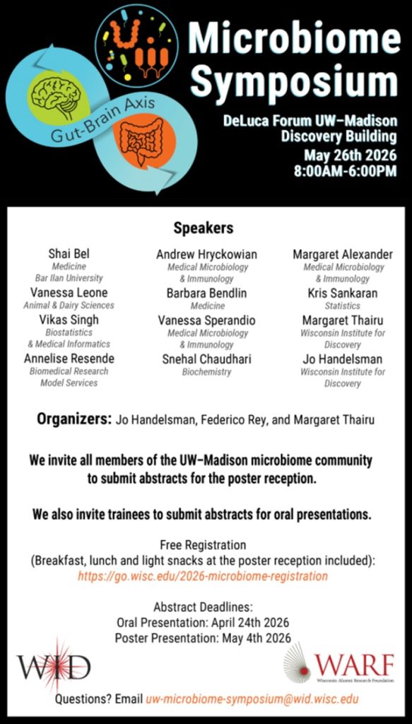 The microbiome research community at UW–Madison is rich and diverse, yet scattered across multiple departments and schools. To bring this community together, the Wisconsin Institute for Discovery is hosting the UW Microbiome Symposium.