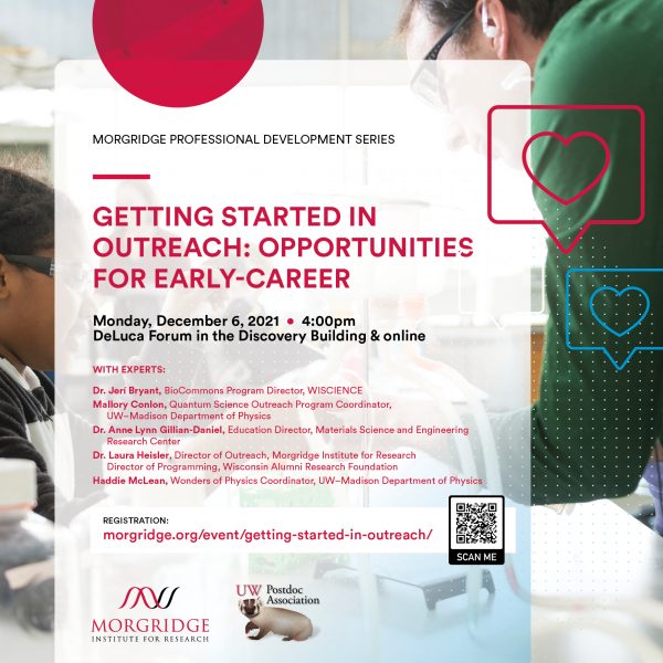 Getting Started in Outreach: Opportunities for Early-Career Trainees Monday, December 6th, 4-5pm Discovery Building (H.F. DeLuca Forum) and online https://morgridge.org/event/getting-started-in-outreach/ You’re passionate about your work, […]