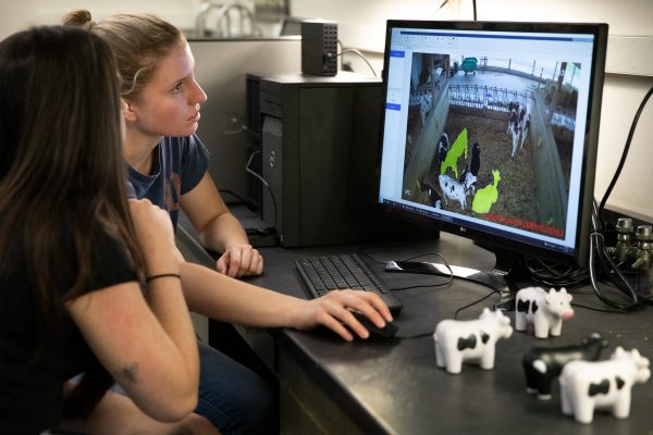 Featured photos: Researchers assess dairy barn camera footage in Dorea lab